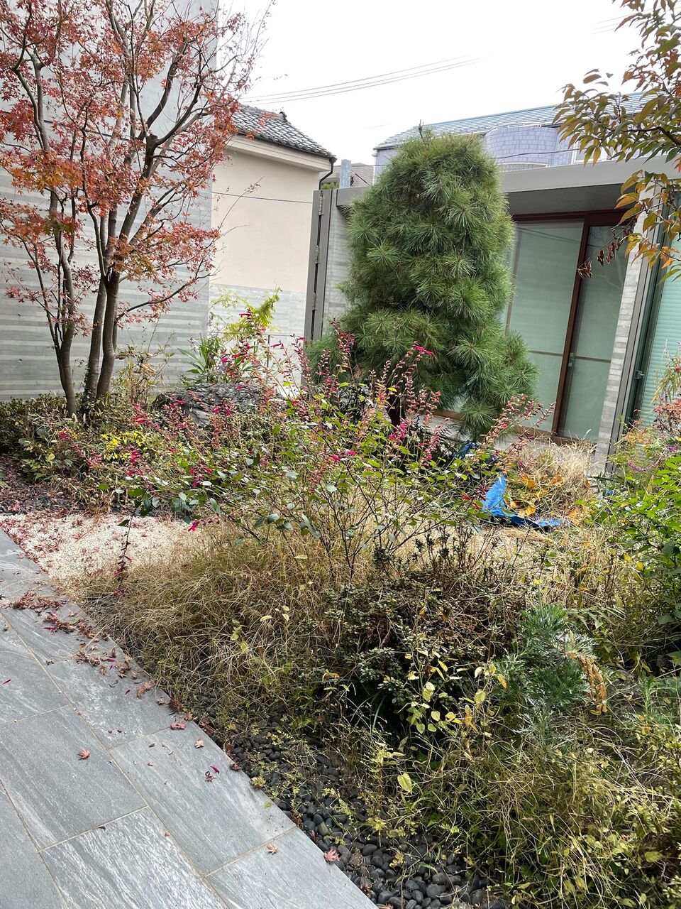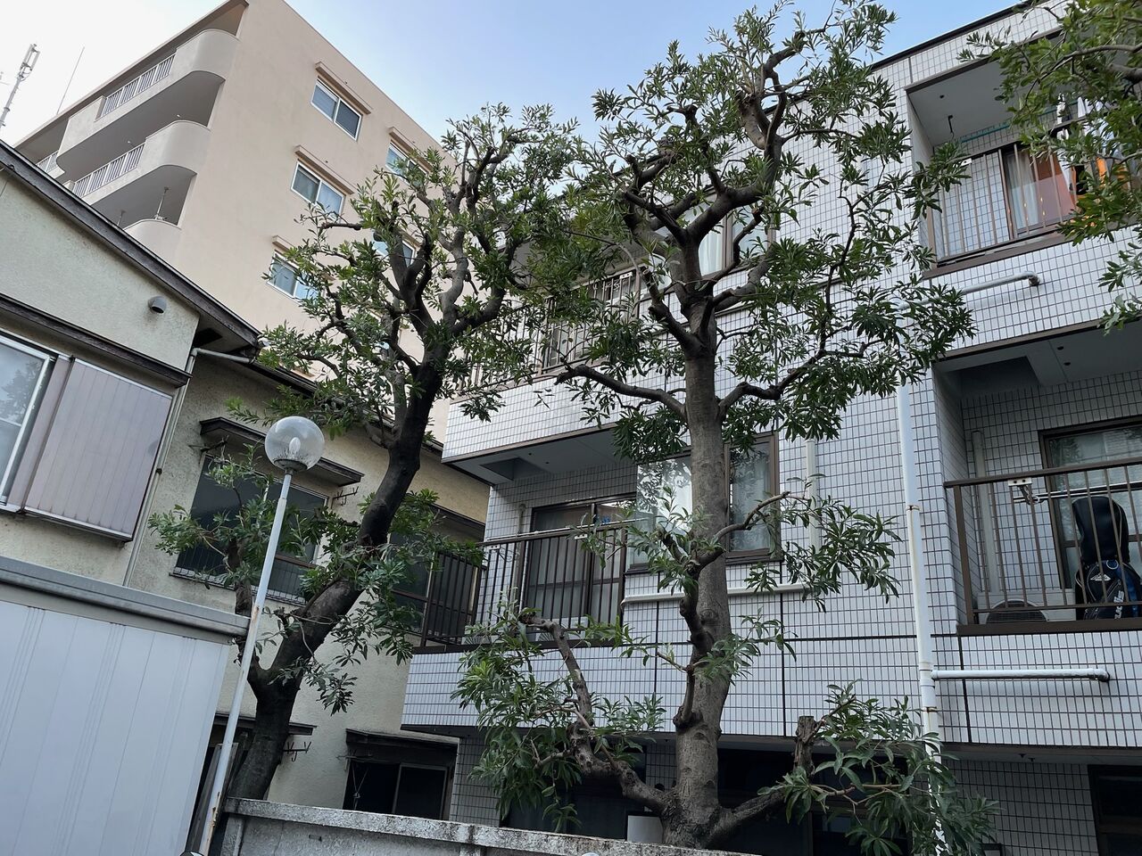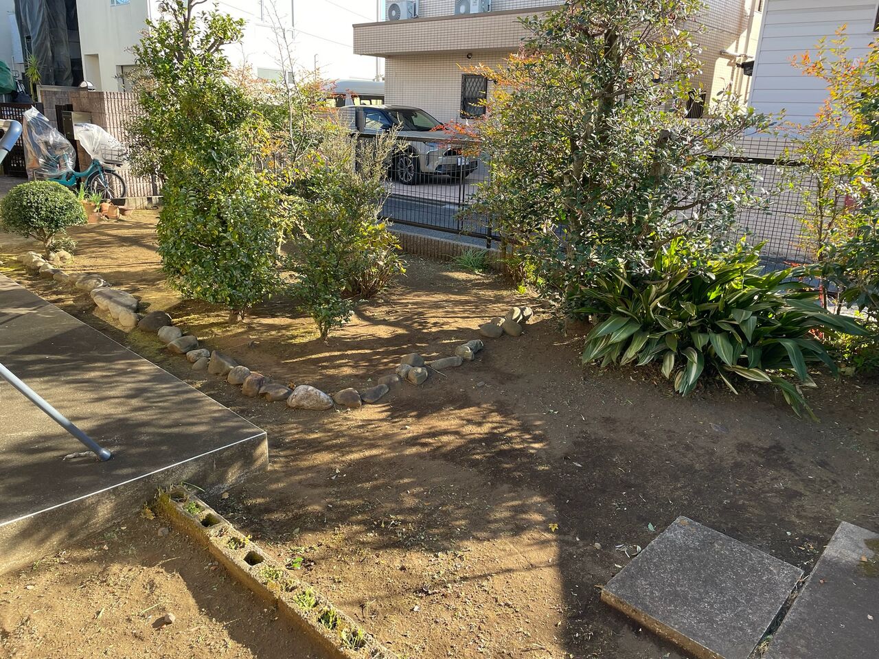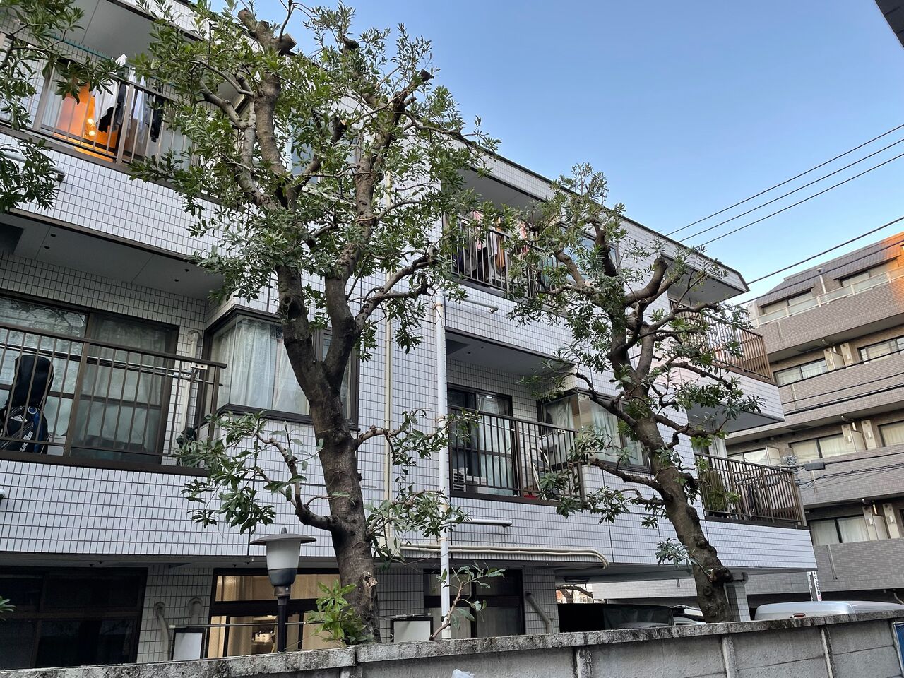 坂道途中のマンションの手入れです