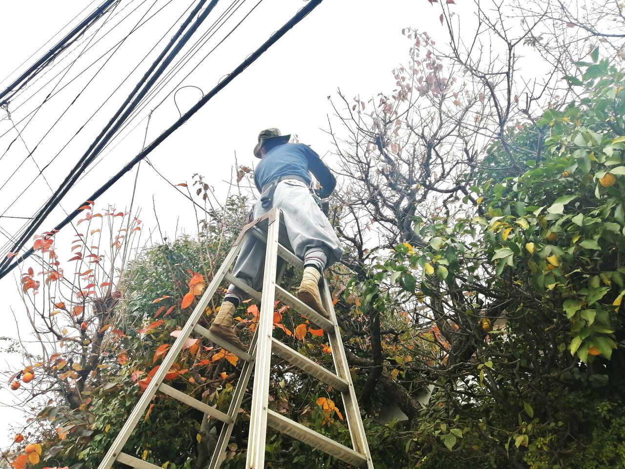 昔はこんな角度で梯子立てても